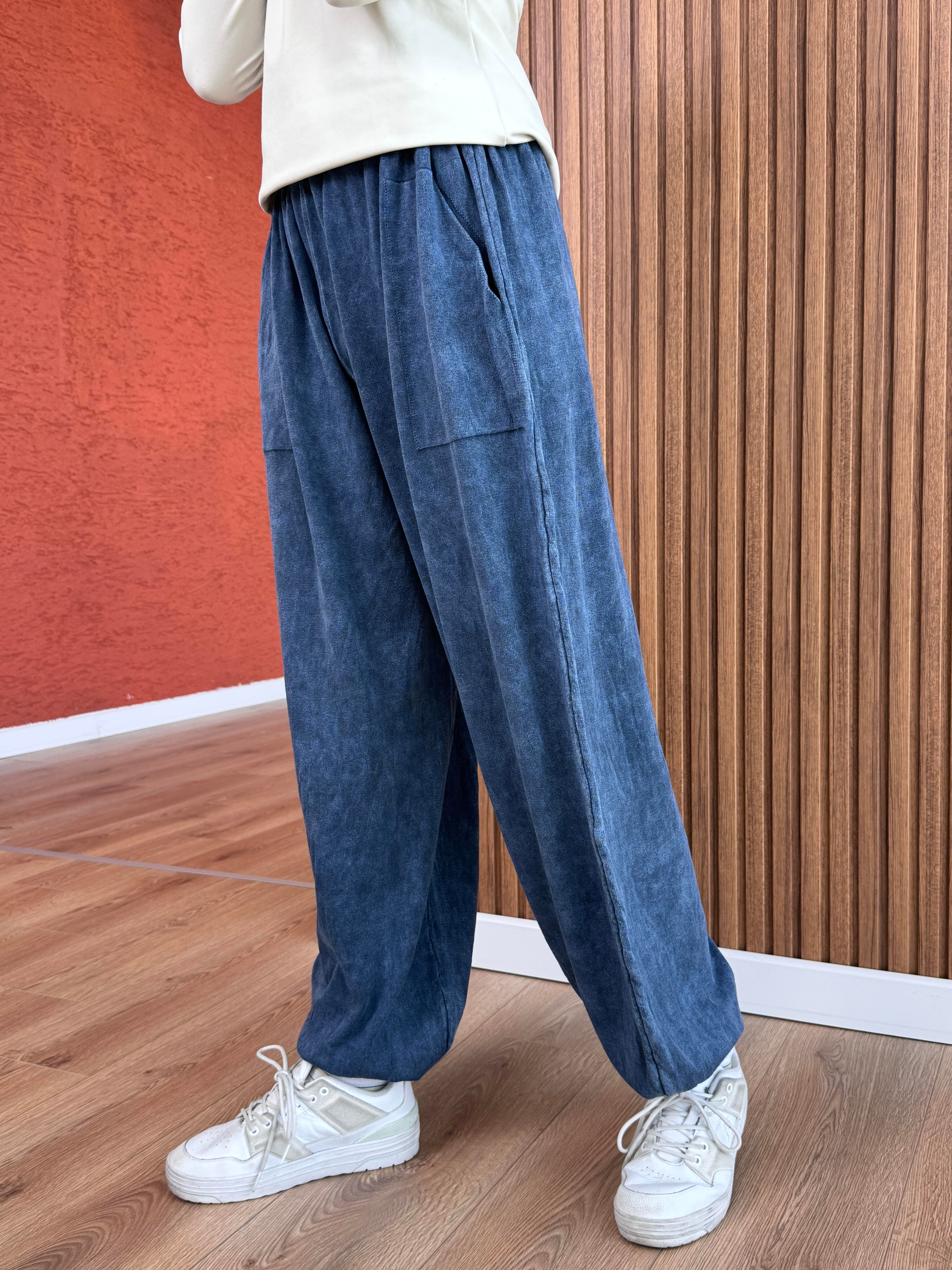 Kadın % 100 Pamuk Pantolon -Mavi (Q191)