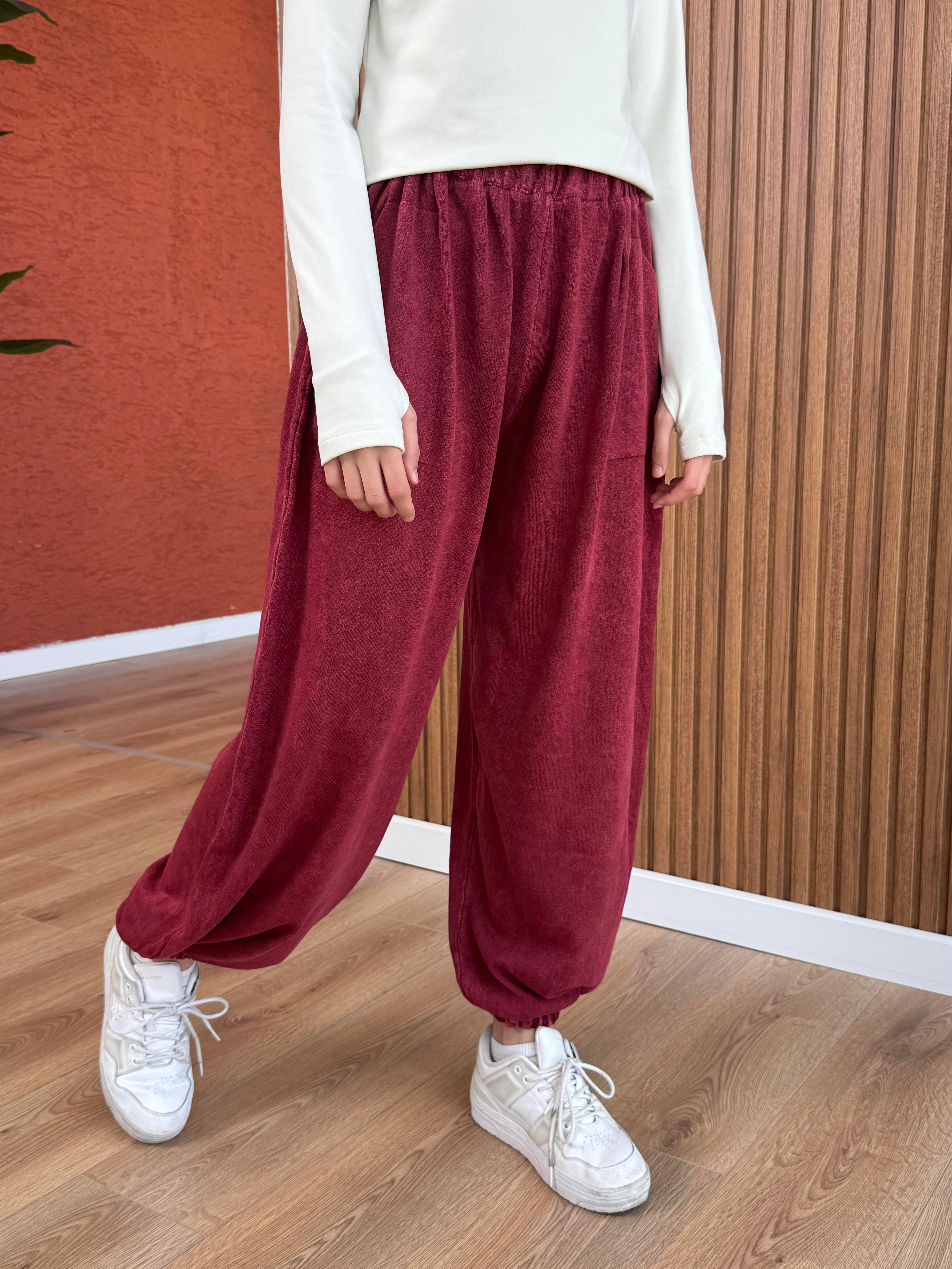 Kadın % 100 Pamuk Pantolon -Bordo (Q191)
