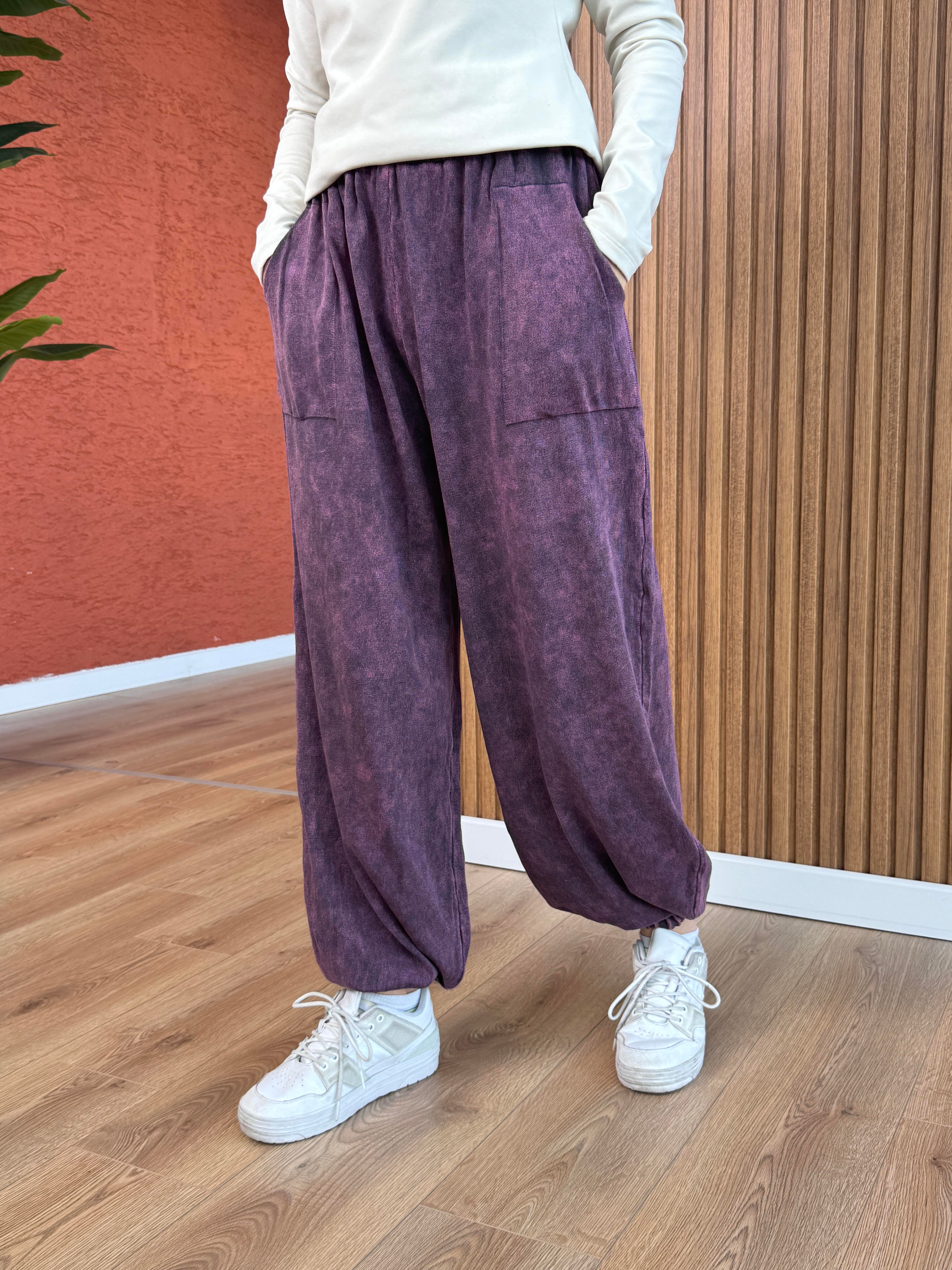Kadın % 100 Pamuk Pantolon -Mor (Q191)