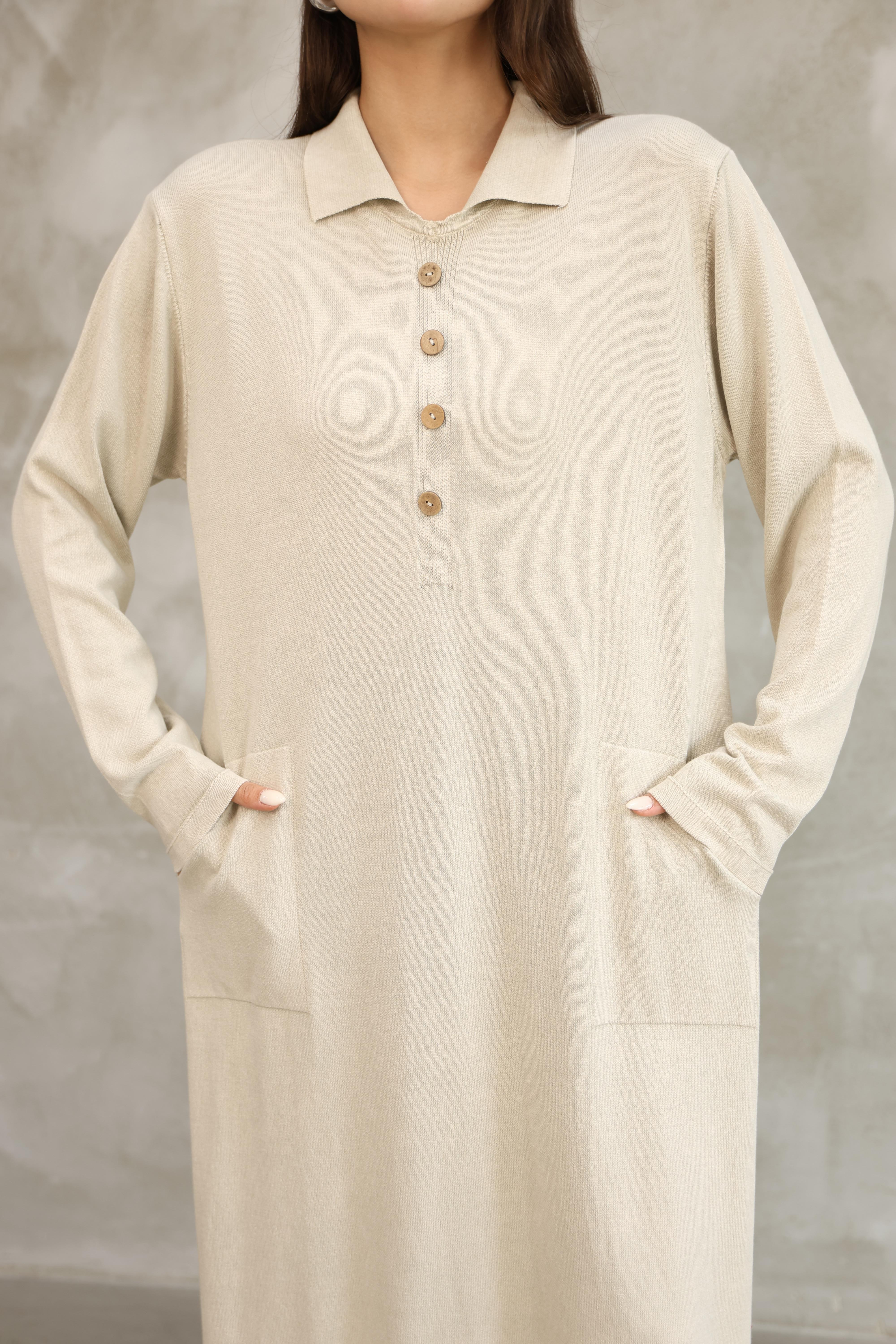 Kadın % 100 Pamuk Yakalı Elbise-Krem (Q219)