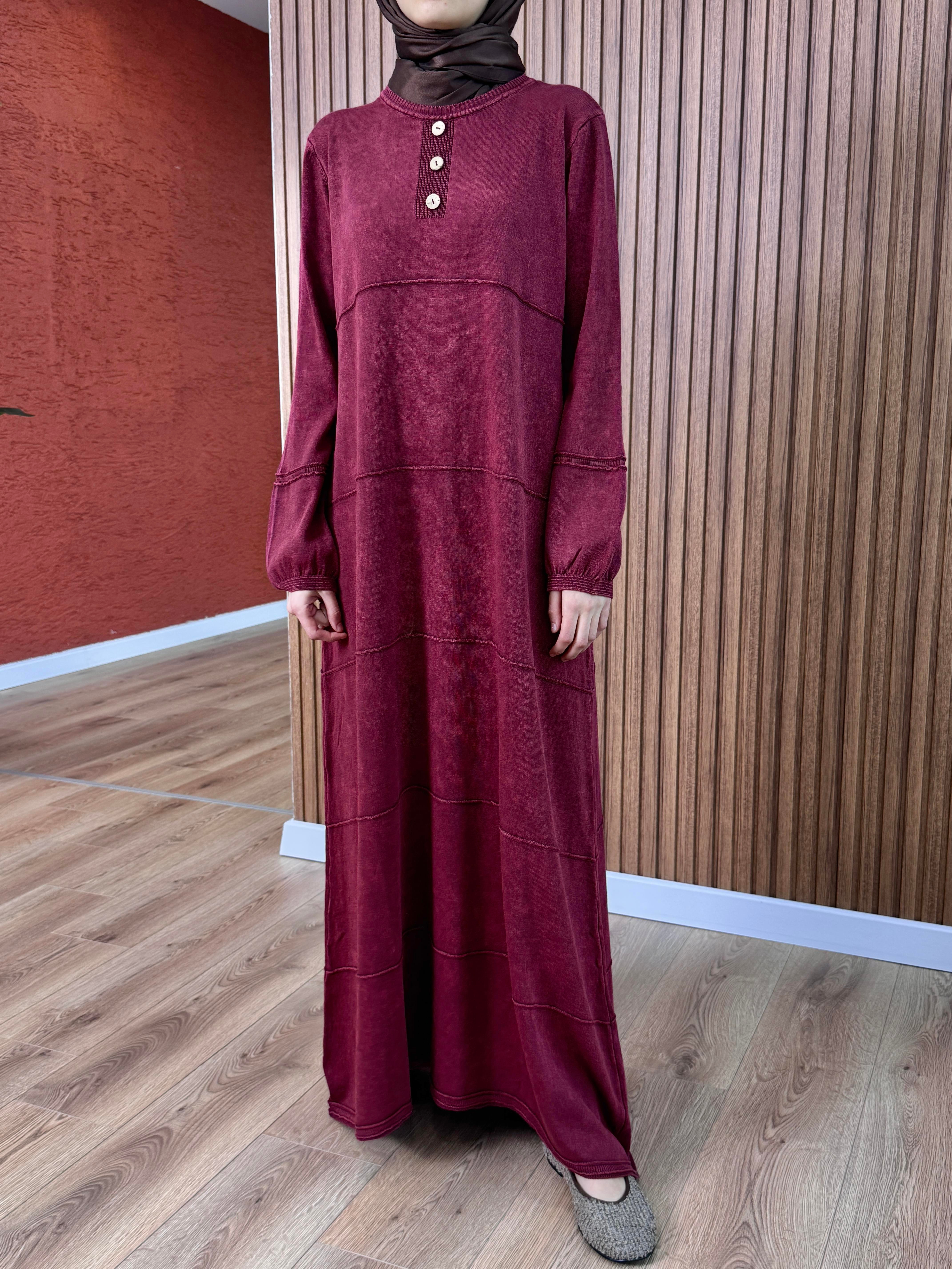 Kadın % 100 Pamuk Yakası Düğme Detay Elbise-Bordo (Q212)
