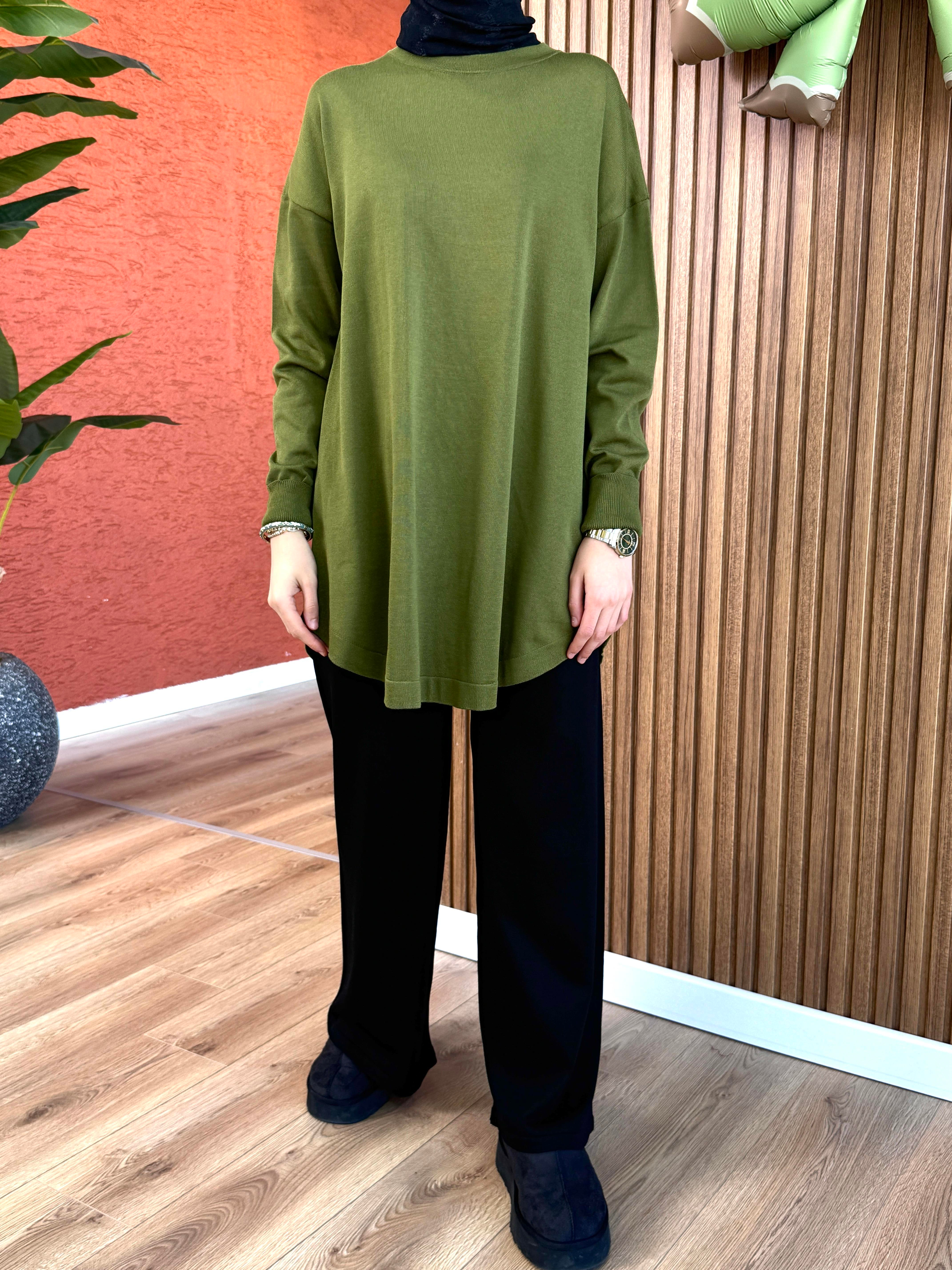 Kadın Merserize Tunik-Yağ Yeşili (Q197)