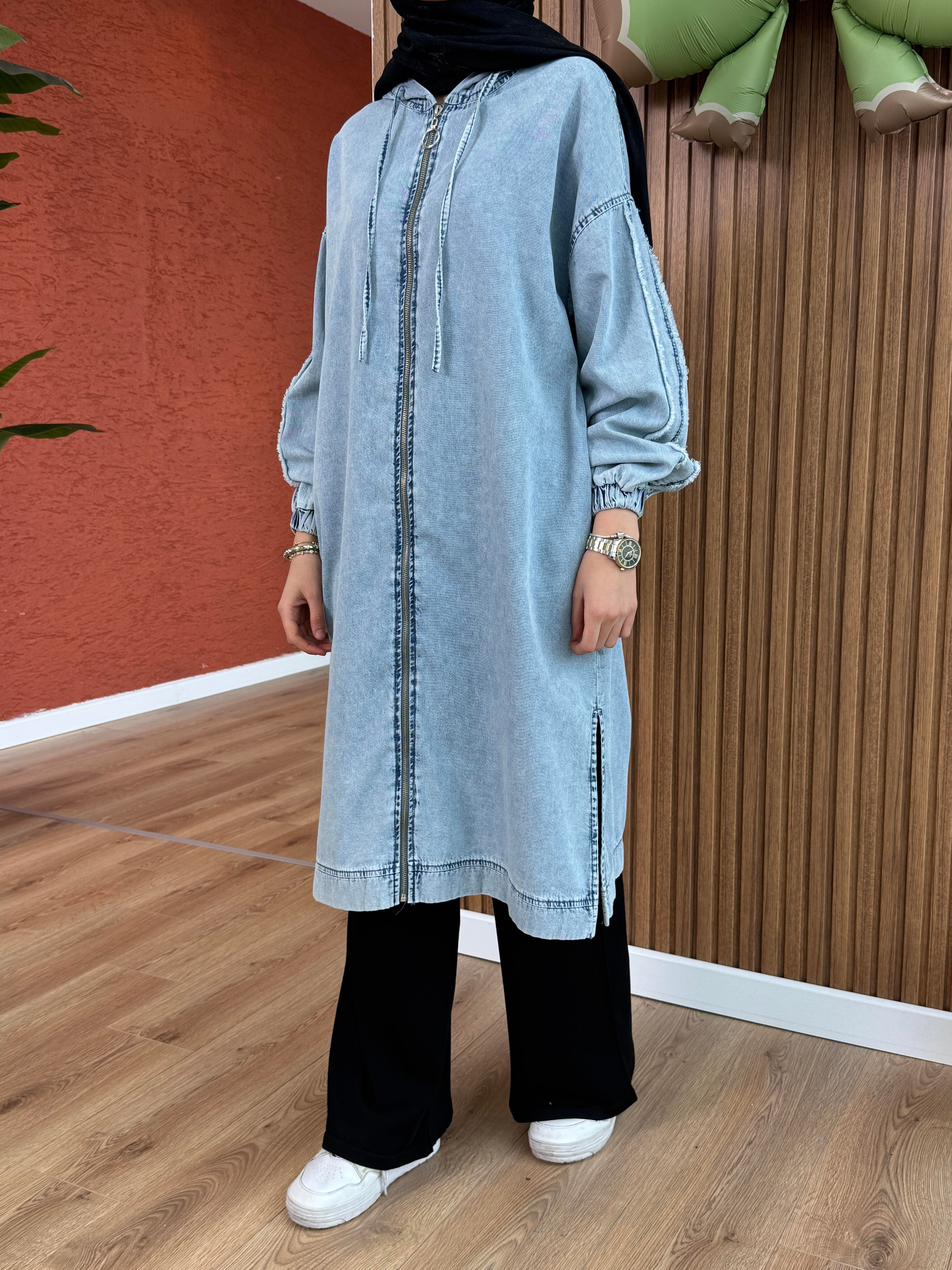 Kadın Tencel Kot Kap-Mavi