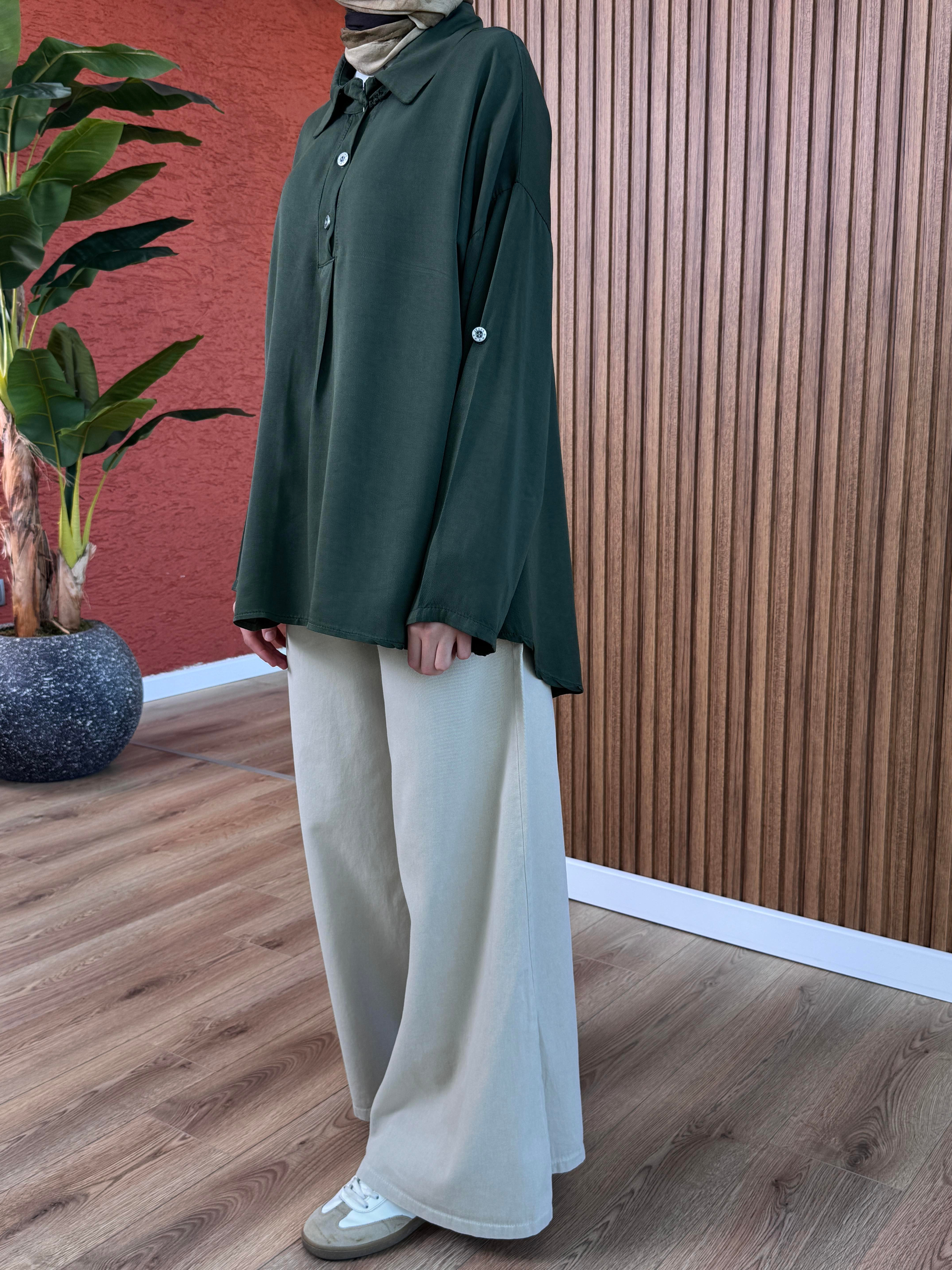 Kadın Tencel Kumaş Tunik-Haki (Q193)